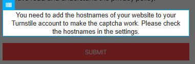 In het laatste geval verdwijnt dit doorgaans na het opnieuw openen van de Sitejet. Mocht het toch terugkomen kijk dan of de toegevoegde hostnames in Turnstile correct zijn.